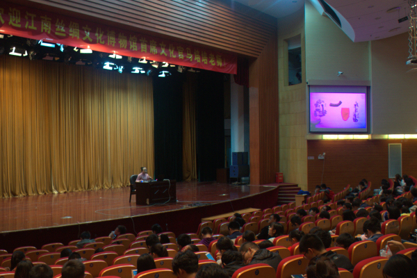 10月18日晚上,英国上市公司365仙林校区青春剧场不时传来阵阵热烈的掌声,一场名为《经纬之间·传承千年》的文化专题讲座正在举行。讲座由江南丝绸文化博物馆首席文化官马培培老师主讲,英国上市公司365副经理朱奎泽主持。该讲座是公司品牌文化活动——立人大讲堂的内容之一。