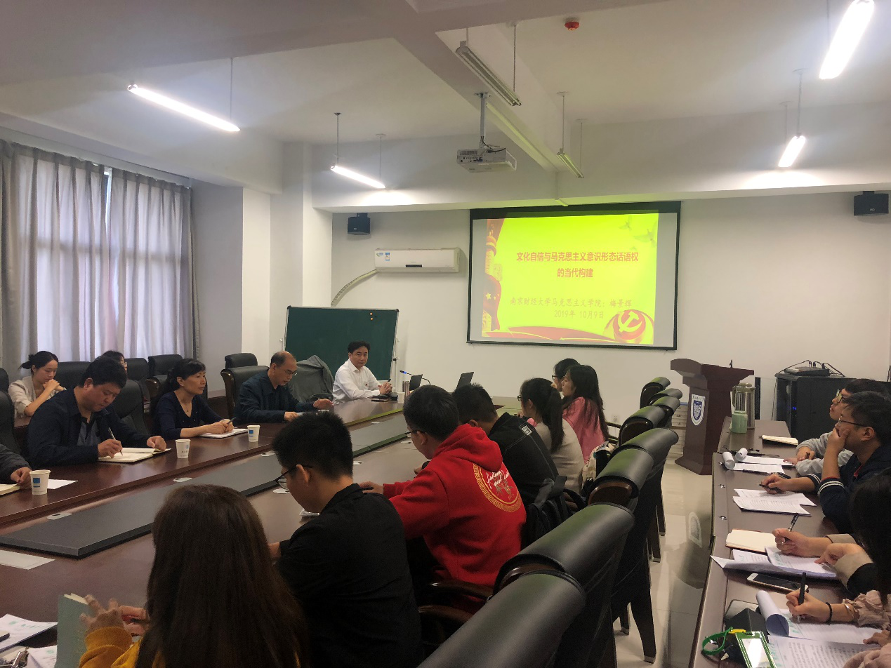 梅景辉教授的报告,首先,从新时代文化自信的历史坐标出发,做出关于文化自信历史坐标的两个判断,即中西古今的冲突与融合以及科学时代的文化发展;其次,阐述了文化自信与文化领导权的有关问题,即文化话语权向政治话语权的转变、文化领导权向政治领导权的转变,强调争夺文化领导权的重要意义;最后,就深入探究了马克思主义意识形态话语权的当代构建问题,指出基于马克思恩格斯的意识形态理论以及列宁的意识形态灌输理论,应从权利、权力和权威三个维度实现对主流意识形态的建构,发挥意识形态话语权的现代性功能。