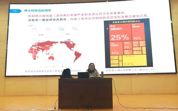 该讲座主要讲述当今世界正经历百年未有之大变局,和平发展的大趋势没有改变,但动荡、冲突、失衡的一面也十分突出,非传统安全问题层出不穷,世界怎么了?该怎么办?国际社会期待听到中国声音。在这样的背景下,习近平总书记应时顺势提出“人类命运共同体” 理念,为促进世界和平与共同发展指明了前进方向,为全球治理体系变革提供了思想引领和行动方案,并多次被写入联合国文件。为推动人类命运共同体的构建,中国通过多层次、多领域作出了努力,中国今年的抗疫实践和国际合作使人类命运共同体理念更加深入人心。展望未来,构建人类命运共同体既面临挑战,也面临难得的机遇。构建人类命运共同体作为通向共产主义社会的智慧方略,未来可期。