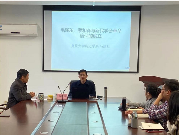 首先熊玉文老师为我们隆重介绍了马建标教授。马教授为复旦大学历史学系教授,目前主要的研究方向为中美关系史、北洋军阀史和近代传播史,马教授是中国社科院近代史研究所博士后,美国加州大学访问学者,上海青年运动史研究会副会长、上海史学会副秘书长,上海市“浦江人才”,2019年入选“上海社科新人”。