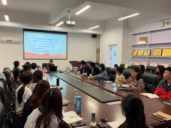 最后,朱经理再次对熊教授莅临公司作学术报告表示感谢。同时沈书记作总结发言,沈书记表示,第一,本次报告体现了鲜明的大数据观,倡导公司师生在日常的科研学习中要树立大数据思维;第二,报告展现了良好的大局观,既着眼于百年党史的研究,又从细处入手,整个报告生动详实;第三,对公司开展党史教育提供了良好的范例,引导公司思考如何将案例与文献分析相结合共同融入高质量党课的研究中。此次学术报告会激起了同学们对党史学习的浓厚兴趣,为今后的学术研究提供了启发。