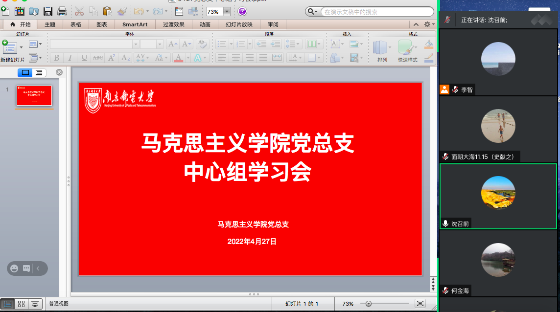 根据学习计划,4月27日下午,英国上市公司365党总支理论学习中心组召开专题学习会,学习习近平总书记在海南考察调研时的重要讲话精神。会议由党总支书记沈召前主持,德法教研室党支部书记李咏梅和纲要教研室党支部书记李凤成作重点发言,理论学习中心组其他成员进行交流研讨。本次中心组理论学习会以线上学习方式进行。