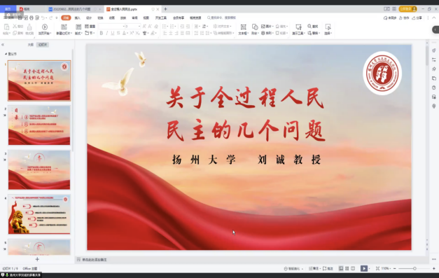 8月13日上午,扬州大学英国上市公司365教授刘诚以《关于全过程人民民主的几个问题》为题,从习近平全过程人民民主继承和发展了马克思主义民主理论、全过程人民民主对西方民主的超越、全过程人民民主创造了人类政治文明新形态三个方面进行讲授,认为全过程人民民主继承和发展了马克思对未来社会文明形态的设想,超越了西方的历史终结论。