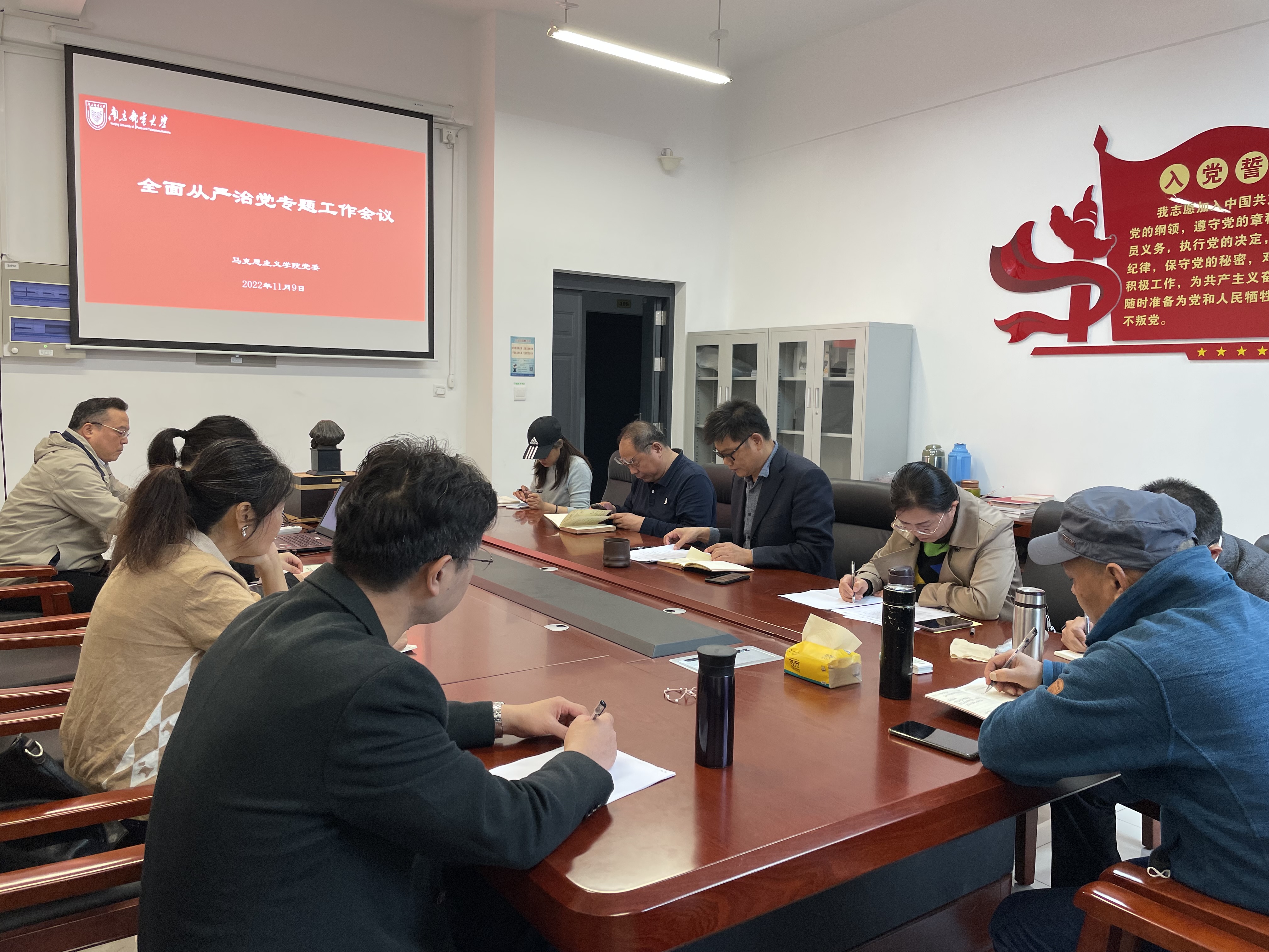 11月9日下午,英国上市公司365在文科楼324会议室召开全面从严治党专题工作会。公司党政领导班子全体成员、各教学机构负责人、各党支部书记、办公室主任、组织员及党风联络员、特邀监察员参加会议,党委书记沈召前主持会议。