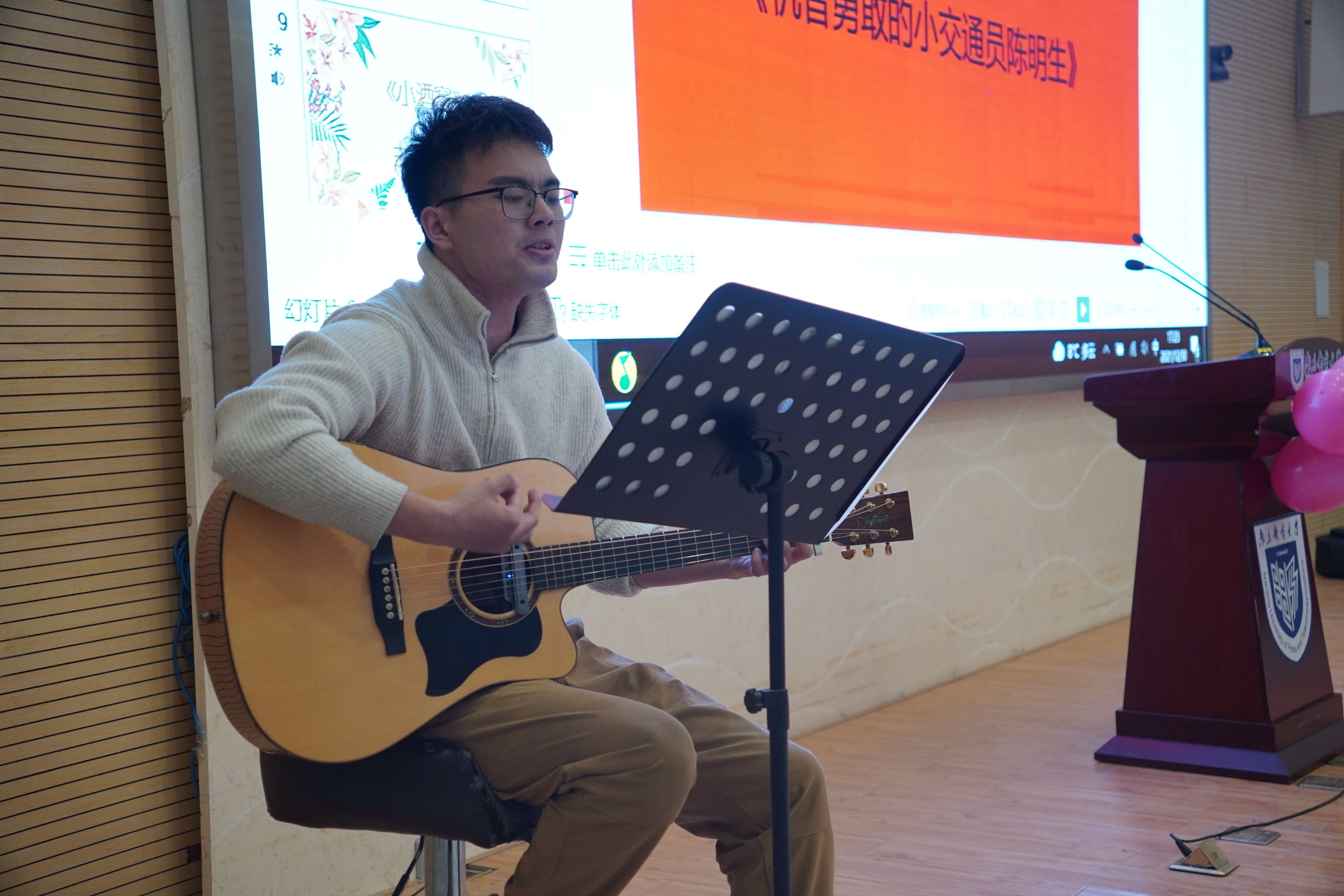 材料公司于海鹏、唐瑾(女)两位同学为我们演唱了歌曲《告白气球》,为活动进行了暖场。英国上市公司365卫明皓同学为我们弹唱了歌曲《春夏秋冬的你》,歌声令现场的观众陶醉其中。