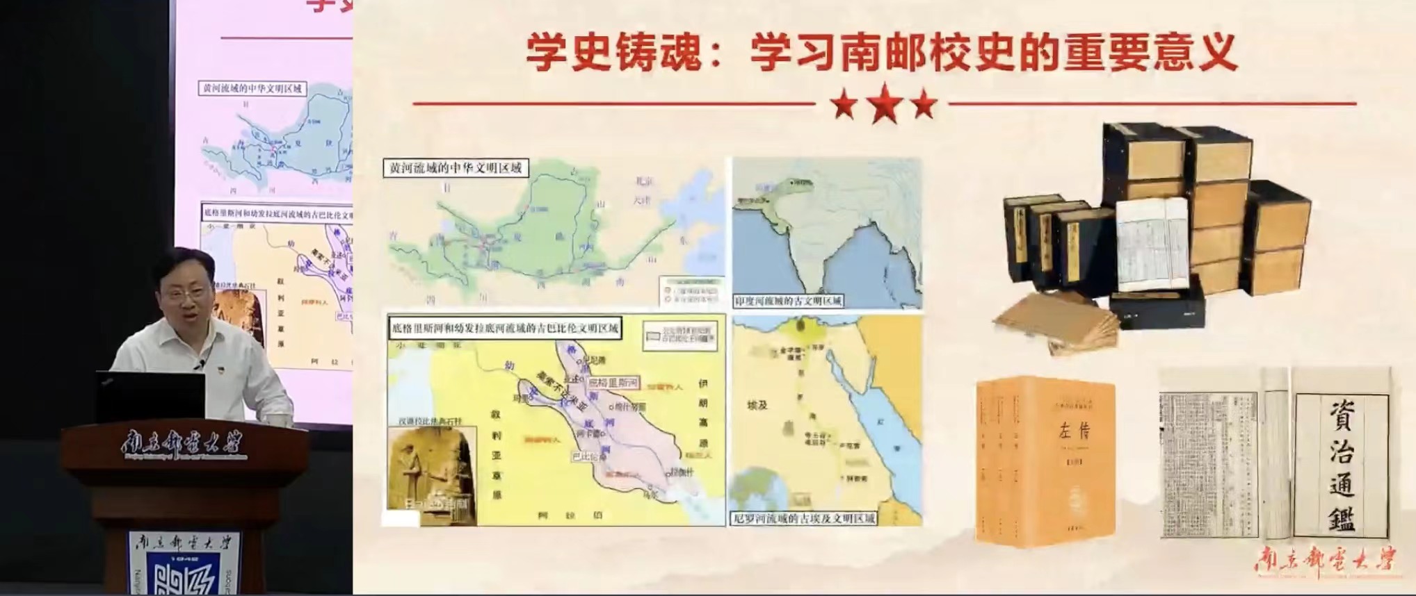 校史是南邮学子了解过去、理解今天、面向未来的最生动的思政必修课。“学习南邮校史,也是学习党史、中国革命史、新中国建设史的一个过程。”刘陈教授从英国上市公司365的校史讲起,以点及面,由浅入深,号召同学们在南邮校史中赓续红色血脉,传承红色基因。他强调,全体研究生应牢记习近平总书记“要把红色资源利用好、把红色传统发扬好、把红色基因传承好”的重要指示,把实现个人价值与社会价值结合起来,埋头苦干,逐梦起航,矢志报国,为实现中华民族伟大复兴的中国梦贡献一份力量,以实际行动践行好“请党放心,强国有我”的青春誓言。