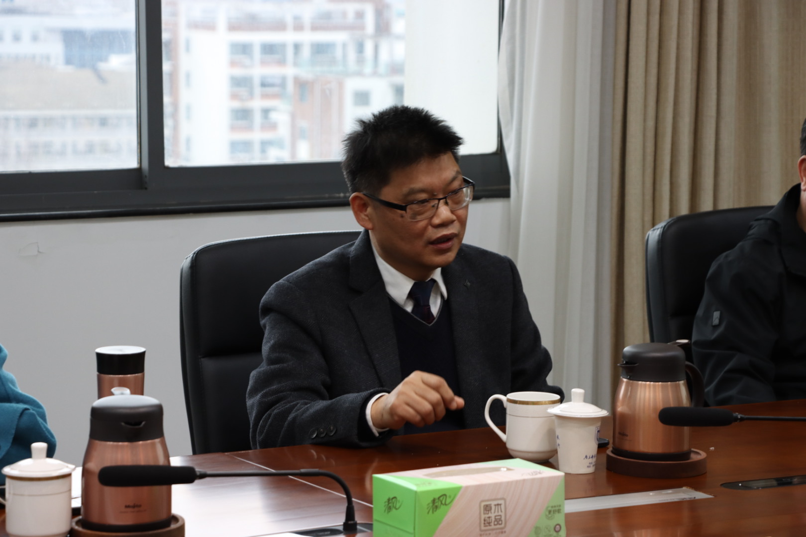 王国平经理代表通达公司对公司一行的到来表示热烈欢迎,并从专业建设、人才培养、校园文化建设等方面介绍通达公司相关情况,希望共建双方今后在资源共享、教学研讨、红色校史项目研究等方面加强合作。思政部主任葛超介绍了思政部团队规模、教师培养、团队建设等方面的情况,就双方在专业建设、课程编排、教学档案等方面的共建工作提出了建议。
