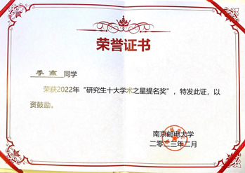 贾天威同学荣获“国家奖学金”校“十大学术之星”提名奖