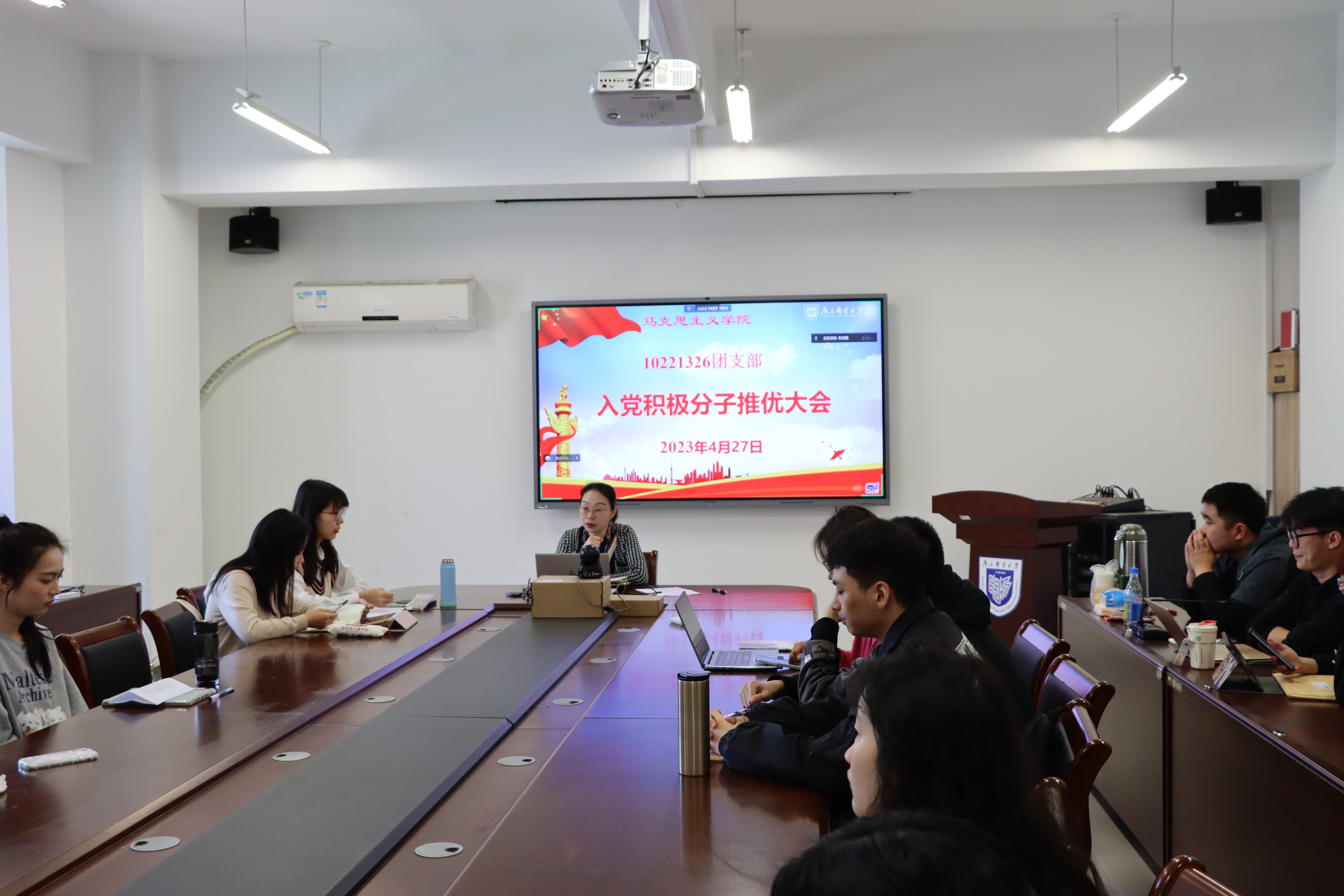 为激发广大青年的政治热情,引导优秀团员凝聚在党的周围,为党组织培养输送新鲜血液。2023年4月27日上午,2022级研究生团支部于文科楼330会议室举行入党积极分子推优大会。本次大会由2022级团支部书记朱泓潞同学主持,研究生党支部书记黄洁老师受邀列席指导,支部团员悉数参会。