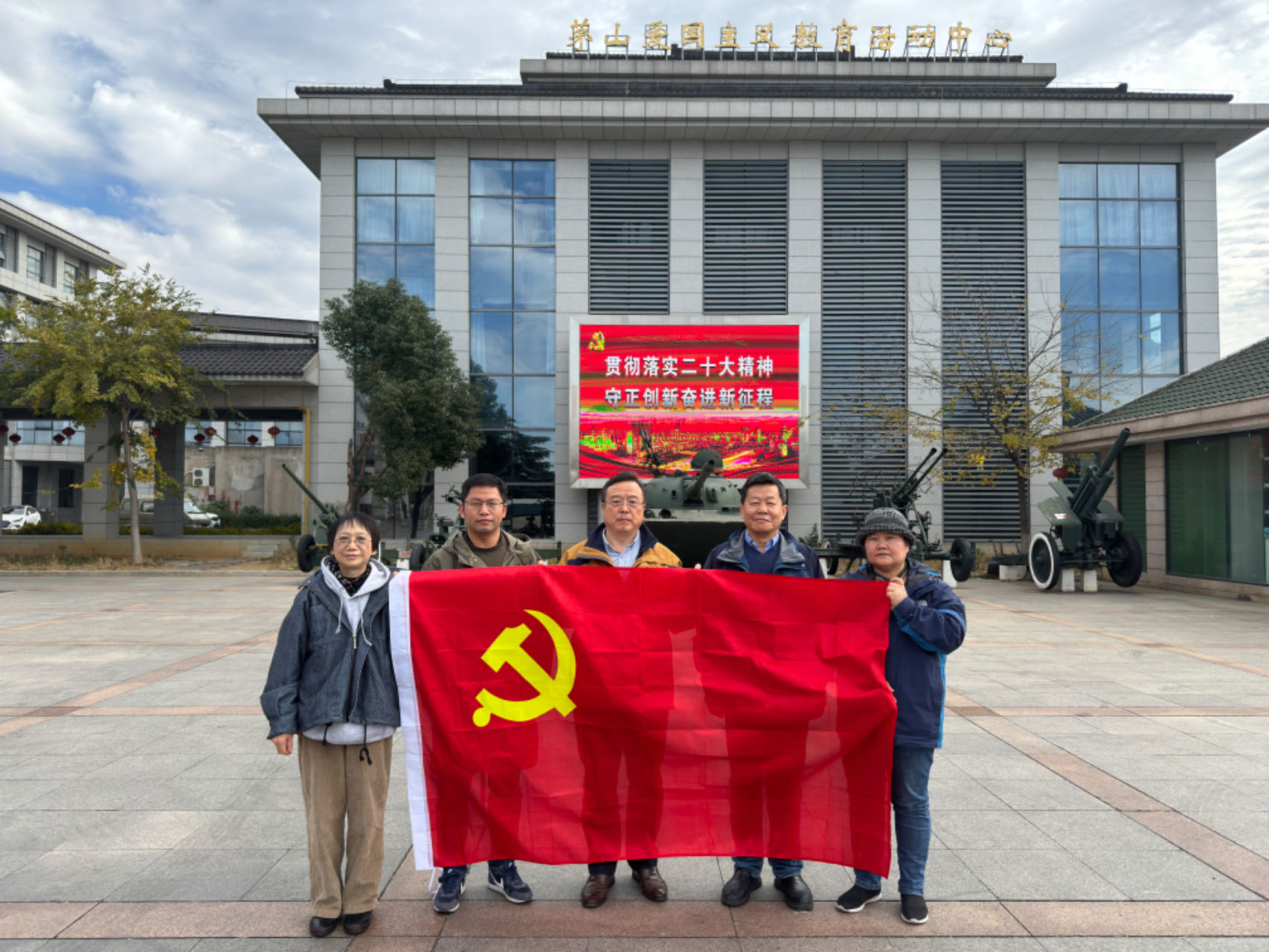 图一:在茅山爱国主义教育活动中心前合影留念