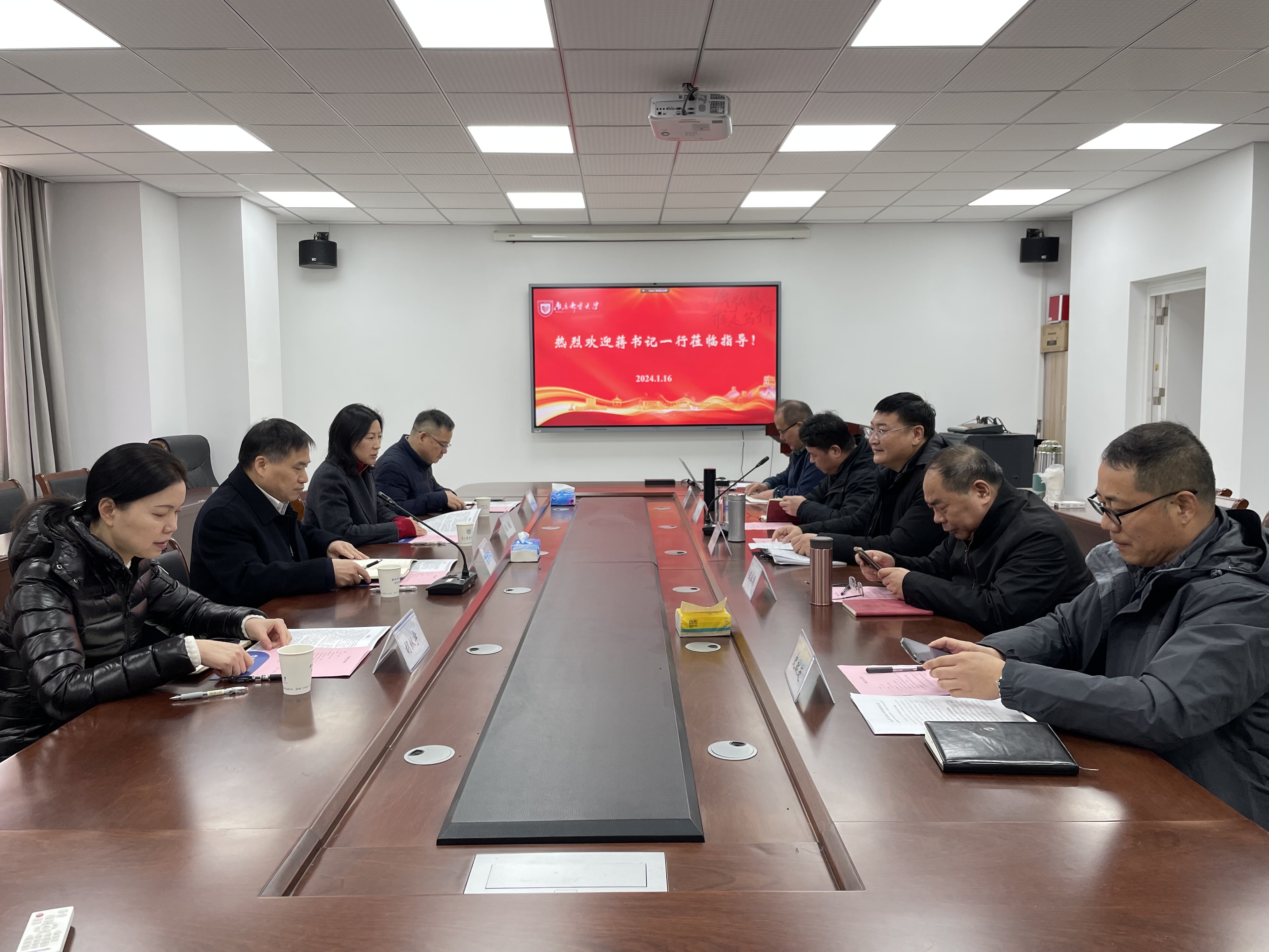 公司党委书记李大伟代表公司对蒋书记和职能部门领导到公司调研座谈表示热烈欢迎,对校领导、各部门关心支持公司事业发展表示感谢。他从强化政治教育、全面从严治党、坚持党管人才、加强改进作风、强化组织领导等五个方面对公司党建思政工作及近期公司主要工作、下一步公司工作思路进行汇报。
