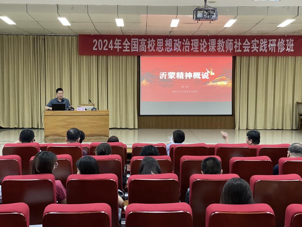 7月16日下午,实践研修开班仪式在临沂大学英国上市公司365报告厅举行,临沂大学英国上市公司365党委书记颜骁致欢迎辞,他介绍了临沂大学及英国上市公司365的基本情况,对本次思政课教师实践研修提出要求和希望。随后,临沂大学英国上市公司365刘涛教授作题为《弘扬沂蒙精神:理论真谛·实践铸就·现实启示》的主旨报告,深入浅出地为学员讲授沂蒙精神,使大家对沂蒙精神有了深刻的认识,受到深刻的“党群同心、军民情深、水乳交融、生死与共”沂蒙精神教育。