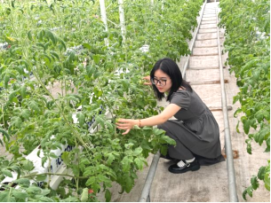 石门镇的文化专干张岁红向我们介绍了园区的各种智能设备情况,并邀请我们实际观察园区内各种蔬菜、水果和花卉的种植状况及生长形态。在交流的过程中,我们发现他对石门镇的各种情况都非常了解,工作人员和村民们都亲切地称他为“石门通”。