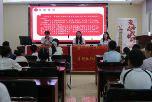 此次活动主要是面向儿童进行红色宣讲,宣讲分为四个部分。第一部分是感受淮海战役精神,通过采取史料结合的方式,简单介绍淮海战役的情况、淮海精神的内涵,初步感知淮海战役及其精神;第二部分是回顾淮海战役中的革命故事,通过选取了一些有代表性的、典型的淮海战役中的能够体现淮海精神的革命故事,使之从具体的事例中感知淮海精神,感悟淮海战役的胜利之来之不易;第三部分是传承和发扬淮海战役精神,从怎么做的角度来分析在新时代如何将淮海战役传承下去,并与现场儿童进行互动,启发他们思考;第四部分是播放淮海战役组歌,以激昂澎湃的组曲来收尾,带动现场气氛,以此来留下深刻印象。