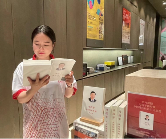 苏州诚品书店,是大陆首家诚品书店,位于风景秀丽的金鸡湖畔。诚品书店在苏州扎根了10年一直是爱书人常去逛的地方不仅新、老、洋苏州人爱去,很多来苏州旅行的人也爱去。在实践过程中,青马邮行社会实践团不仅深入了解了习近平总书记关于文化建设和书香社会建设的重要论述,更在诚品书店这一充满艺术氛围与文化底蕴的空间里,亲身感受到了阅读的力量与文化的魅力。