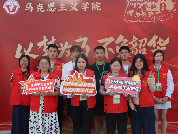 “社会主义接班人”“唯物史观启新程、 青春奋进梦终成”等一条条热情洋溢的条幅和手持展板吸引新生和家长驻足留影,定格他们难忘的青春时刻,记录“研”途的崭新风华。