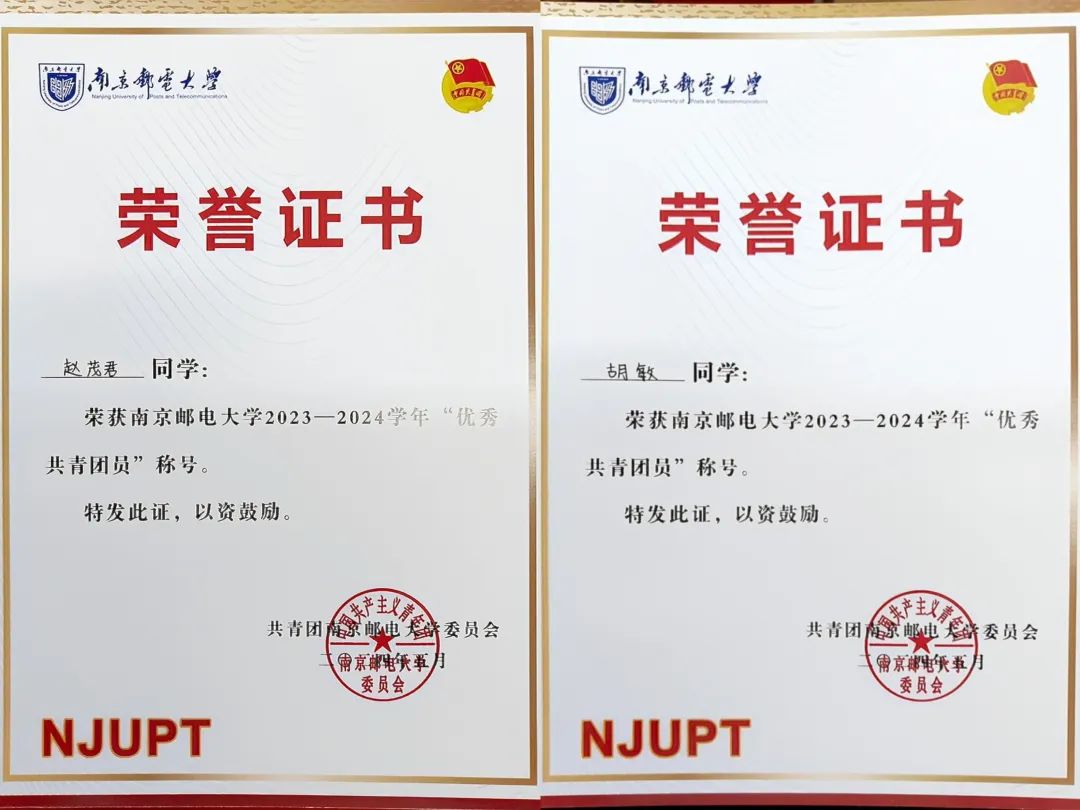 胡敏、赵茂君、张蕾、肖静、汪静、李琦同学荣获2024-2025学年“优秀共青团员”称号