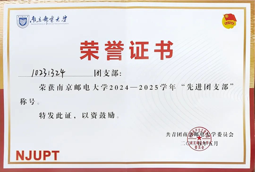 在公司共青团“五四”评优中,10231324团支部荣获2024-2025学年“先进团支部”称号