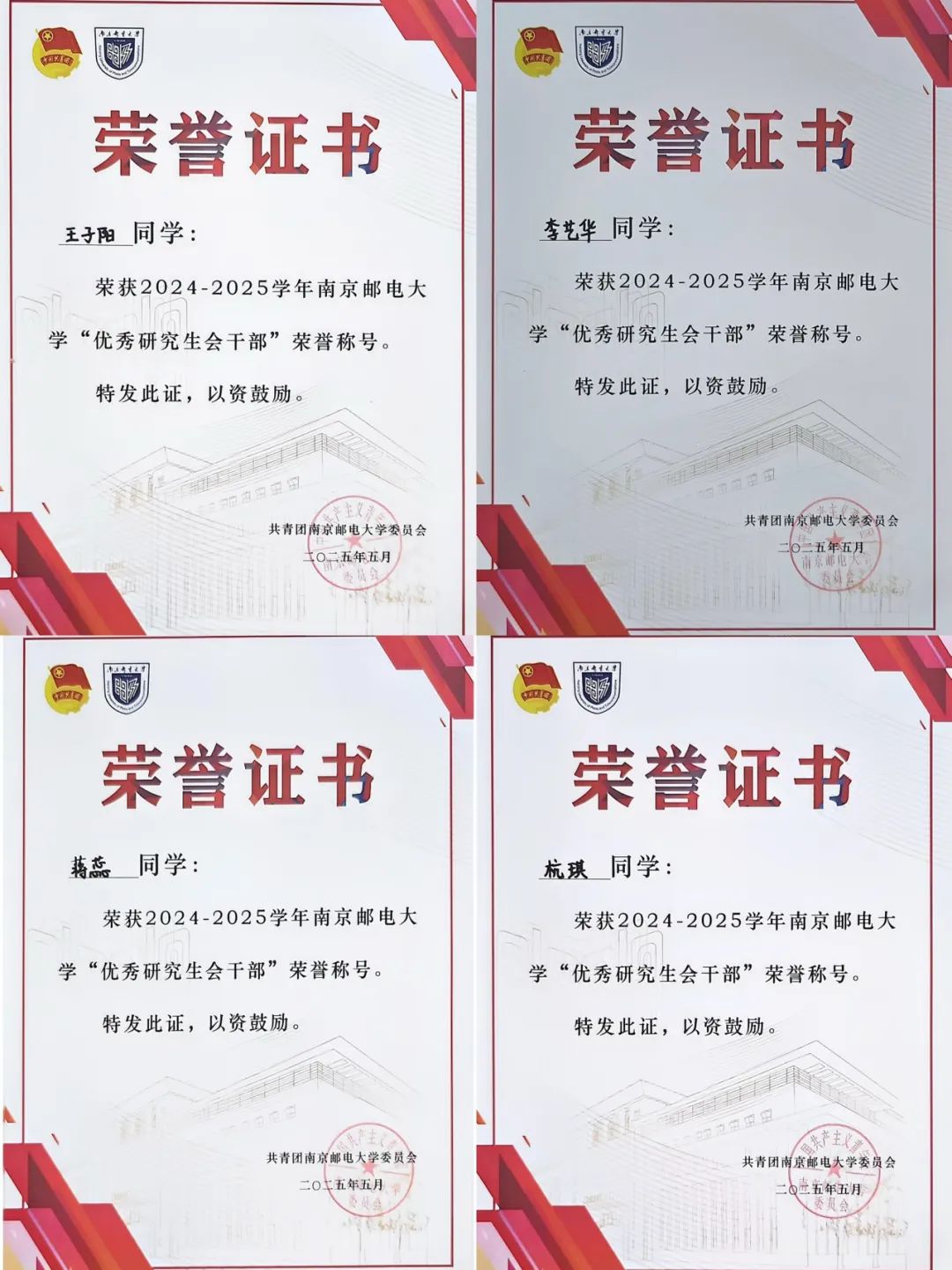 王子阳、李艺华、蒋蕊、杭琪同学荣获2024-2025学年英国上市公司365“优秀研究生会干部”荣誉称号