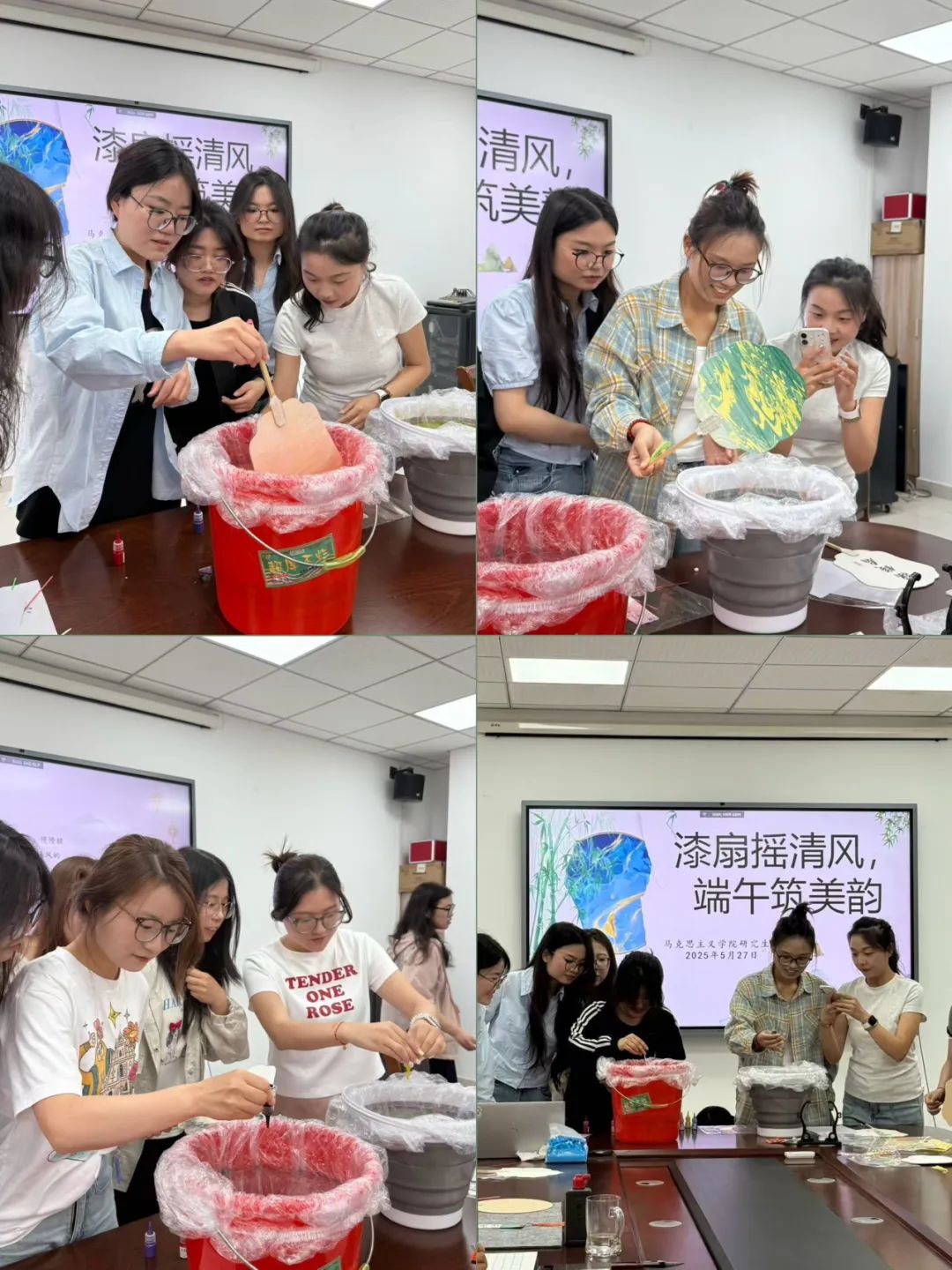 在端午佳节来临之际,为弘扬中华优秀传统文化,提升审美水平,增进师生交流,营造浓厚的节日氛围,5月27日下午,英国上市公司365在文科楼330教室举办了“漆扇摇清风,端午筑美韵”手工漆扇制作活动。活动由研究生辅导员黄洁老师主持,特邀嘉宾党委副书记、副经理朱奎泽、研究生导师熊玉文教授和部分研究生参加了此次活动,师生们在绘制漆扇中感受传统工艺之美,共筑端午雅韵。