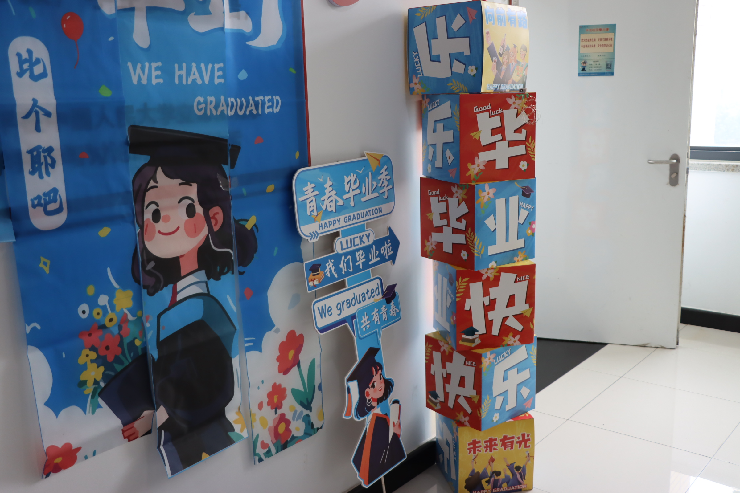 三载勤学终成硕果,今朝展翼正待翱翔。最后,公司师生共同品尝毕业惊喜蛋糕并合影留念,分享喜悦与甘甜。至此,2025届研究生毕业生欢送会圆满落下帷幕。